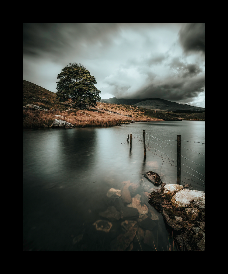 Moody skies at Llyn y Dywarchen in the Eryri / Snowdonia National Park, Wales.