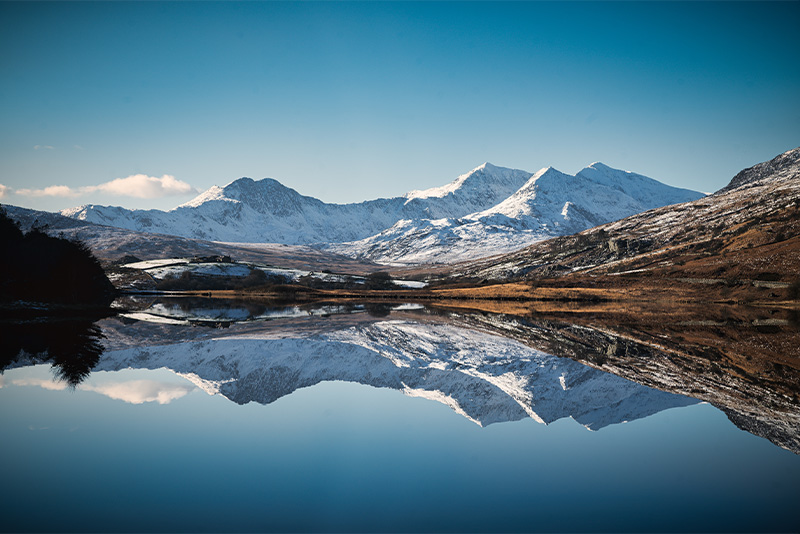 Snow capped photo of Yr Wyddfa (Snowdon) in the Eryri / Snowdonia National Park, Wales.